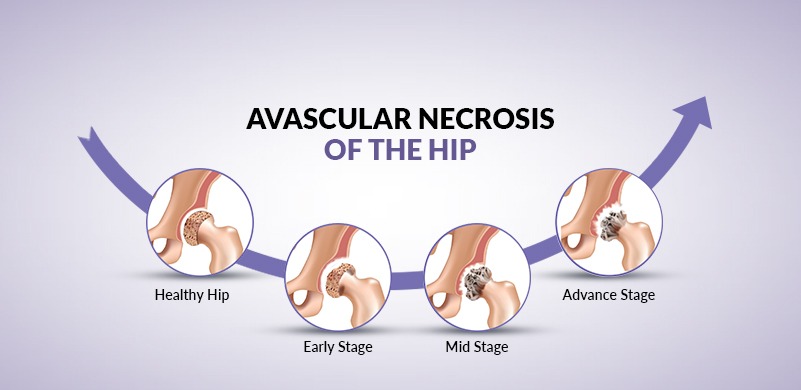 Avascular necrosis (AVN) happens when blood can’t reach head of femur and Hip joint tissue begins to die. Without treatment, this condition can get worse so that dead bone eventually breaks down or crumbles. The disease may affect any bone in your body. But it most often affects: