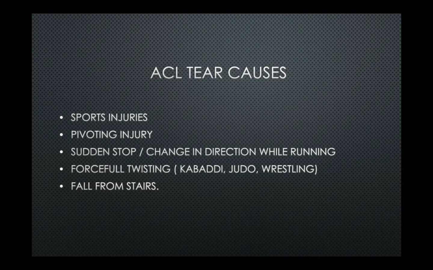 ACL injuries most commonly occur during sports that requires sudden stops or changes in direction, jumping and landing — such as cricket, football, basketball, badminton, treadmill running, wrestling, kabaddi, kho -kho and skiing.