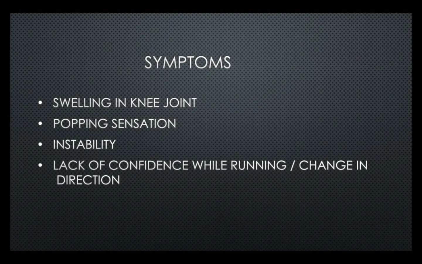 It is very common to hear a pop or feel a “popping” sensation in the knee when an ACL injury occurs. The knee gets swell, feel unstable as if you are about to fall especially while running fast or during frequent change in direction and become too painful to bear weight.
